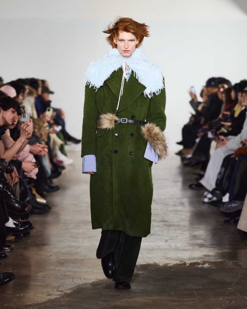 The brand’s signature is instantly recognizable: a blurred, post-apocalyptic take on tailoring. Built through layers, the silhouettes seem to take shape before the viewer’s eyes. Despite the accumulation, the use of natural fibers preserves a lightness that makes the whole feel surprisingly airy.