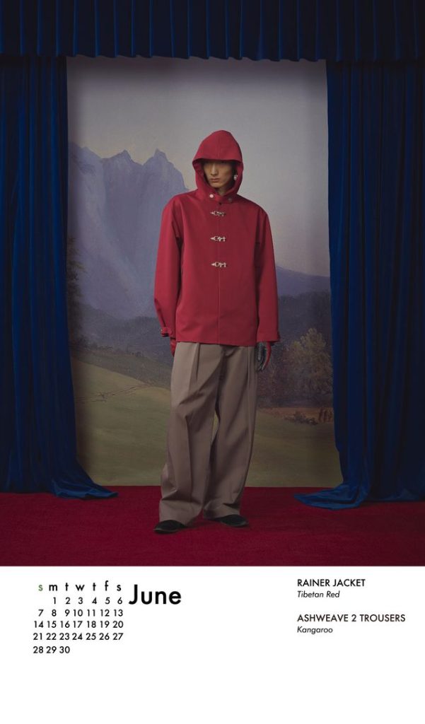 At the collection presentation hosted at Gros Bao, the setting, a carefully recreated 1950s-1960s living room with patterned wallpaper, velvet and trinkets instantly suggests the time-frozen interiors familiar to several generations. The unisex silhouettes embrace a deliberately relaxed attitude: terracotta tracksuits set to be a key color this year—puffer jackets with multiple zips, and jackets detailed with metal toggle fastenings. A wardrobe designed for comfort, yet far from lacking in nuance.