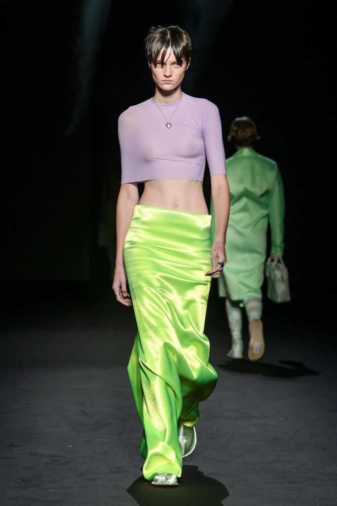 Others choose a subtler approach, starting with the nails. A flash of neon yellow, a hot-pink French tip or a graphic motif is enough to introduce a touch of “cunti cunta.” For the more daring ones, however, a statement piece remains the most decisive way in. A draped skirt in radioactive orange, an acid-green second-skin top or an electric-blue nylon parka, in the spirit of Demna’s Balenciaga.