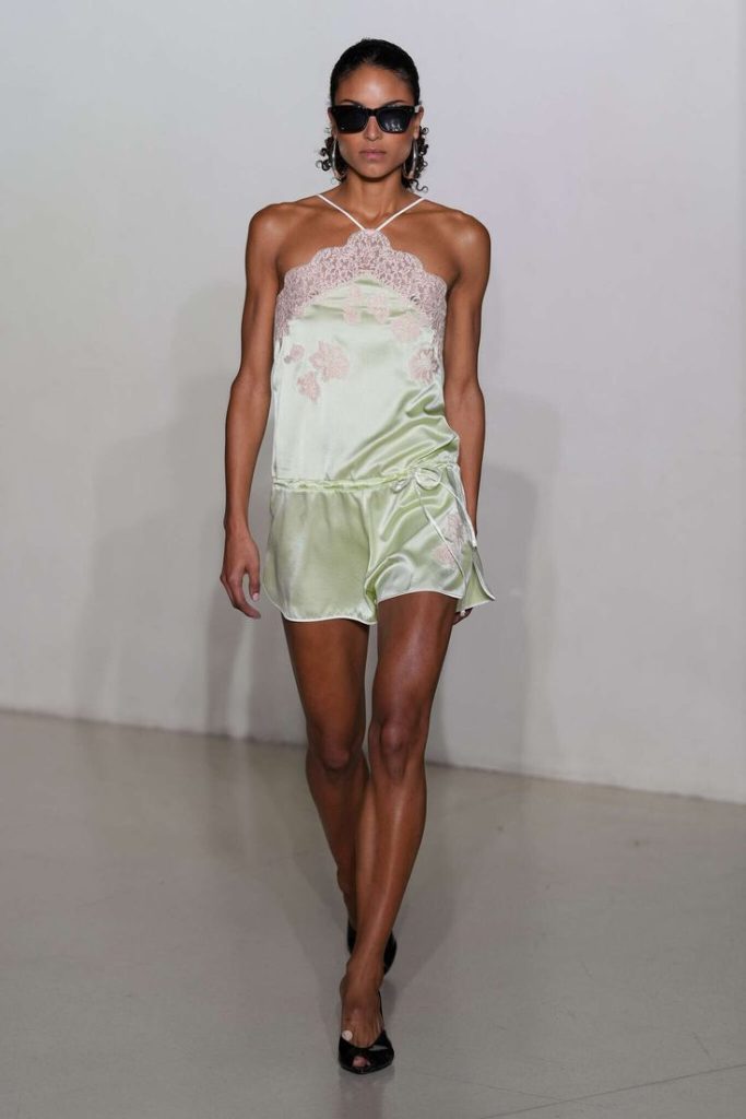 On the Spring Summer 2026 runways, the slip dress stood out at Victoria Beckham and at Vaillant, where it has become a signature piece over the seasons. Dolce and Gabbana went for a more classic approach with cotton pajamas. Their show even became the backdrop for a scene in the upcoming Devil Wears Prada 2. And Prada sealed the trend with its Fall-Winter 2025 campaign starring Kendall Jenner. Pajamas are now officially ready to step outside.