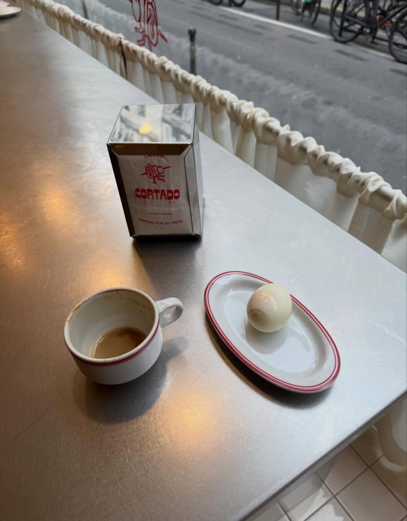 Fashion Week is also the perfect excuse to explore new venues and revisit addresses that have become essential. Cortado, a Spanish-inspired coffee shop and bar, stands out as an ideal stop. Whether for a quick coffee or a late dinner. The spot has already welcomed Rosalía and regularly attracts the crème de la crème of the fashion scene.