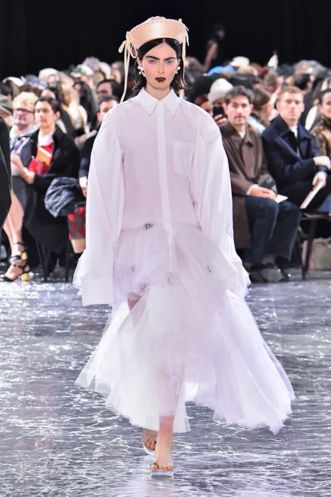 Since September, TikTok has been flooded with DIY takes on the sailor hat. The unexpected trend is driven by users openly drawing inspiration from the world of Jean-Paul Gaultier, the ultimate master of the sailor aesthetic. One creator even directly references the house’s Spring-Summer 2024 couture collection by Simone Rocha, where the sailor hat emerges as a neo-romantic accessory.