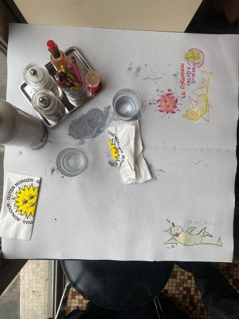At lunchtime, people stop by for a quick meal between meetings. In the evening, the atmosphere turns more intimate, making it ideal for a date. The paper tablecloths on which you can draw with Crayola, add a delightfully playful touch. With the arrival of sunny days, its sliding windows become one of its greatest assets, letting in that soft spring breeze.