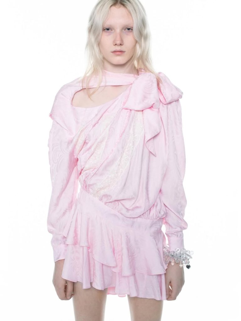 The menswear line, meanwhile, offers a reinterpretation of masculinity: open backs, sheer blouses, fluid cuts and an explosion of color shape a hybrid wardrobe. Fanci Club is therefore not content with following the spirit of the times, it is helping to shape it.