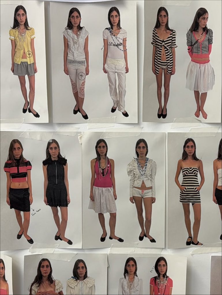 Production remains deliberately confidential: all pieces are handmade in the British capital, in very limited quantities. This reduced scale is not a constraint but a cornerstone of the label’s identity. Lucila Safdie speaks of a fashion where emotion and intimacy are inseparable from the creative process. Hybrid pieces, polos fused with knitwear, demure silhouettes subverted by lace details, transparency or cut-outs, embody this pursuit of understated complexity.