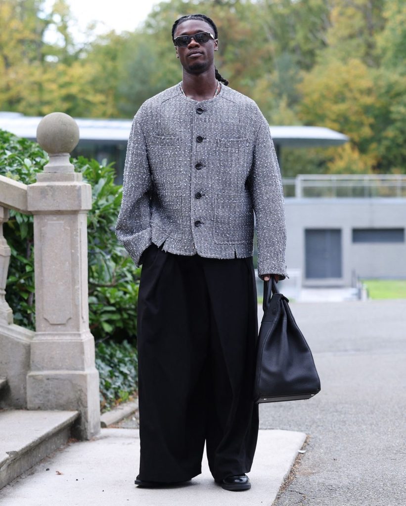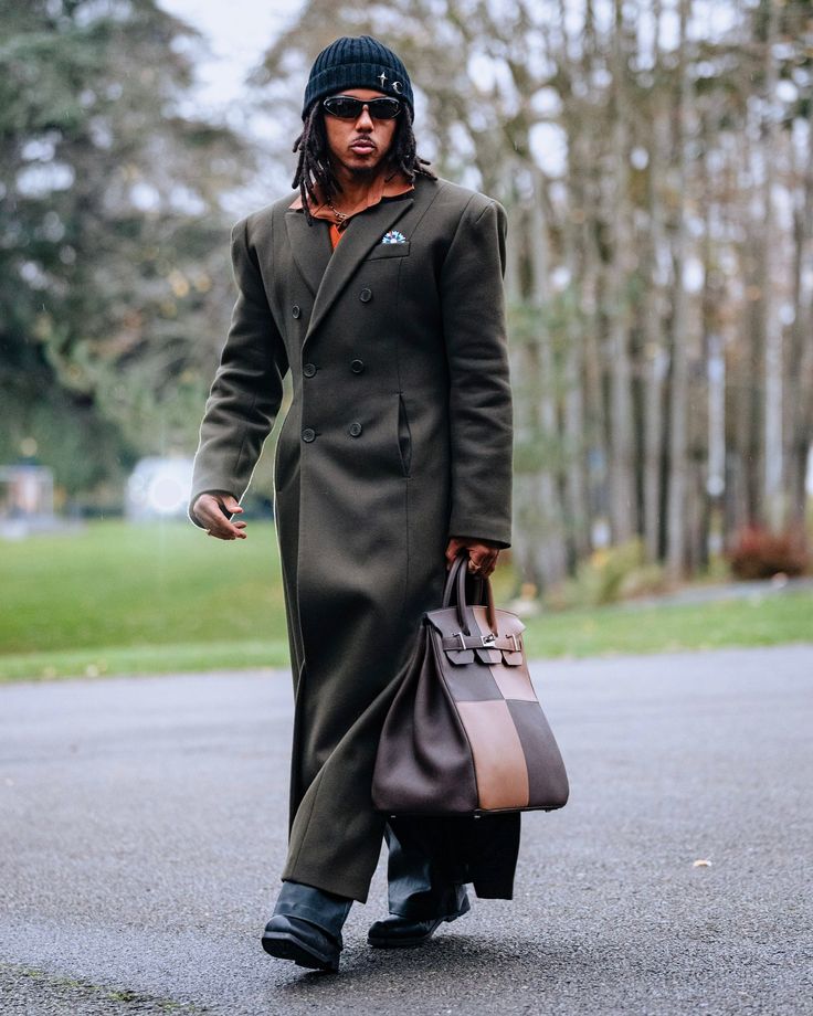 In France, arrivals at Clairefontaine have become a new fashion runway. Jules Koundé has made a series of standout appearances there, sporting heeled ankle boots and a Louis Vuitton bag on his arm. Meanwhile, Eduardo Camavinga recently caused a stir by opting for Hermès’ Haut à Courroies, a trapeze-shaped model. As the value of Birkin bags, long coveted by a wealthy female clientele continues to soar, this reappropriation by the Real Madrid midfielder sends a strong signal: men, too, are now taking a keen interest in Hermès.