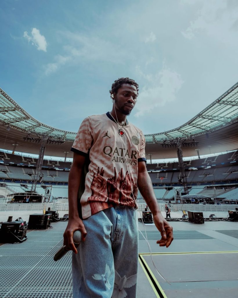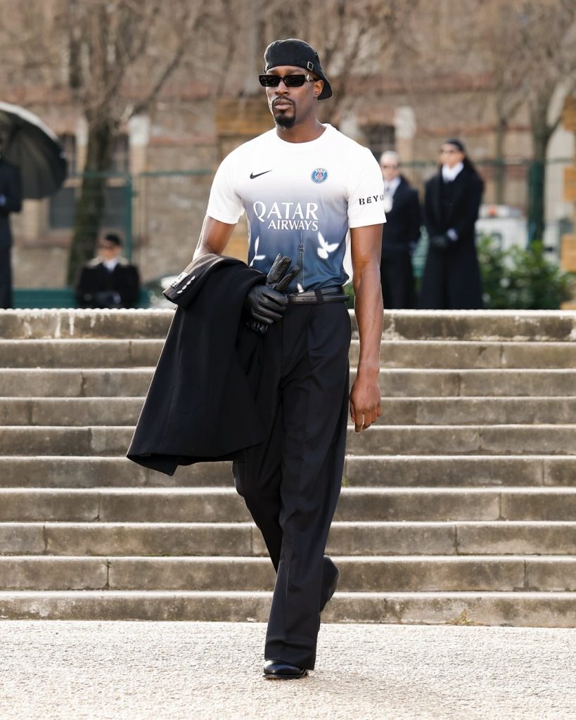 The stars seem particularly well aligned for Emeric Tchatchoua. Recently named a Knight of the Order of Arts and Letters, the designer continues his dialogue with Paris Saint-Germain, riding high on the club’s Champions League triumph and the consecration of Ousmane Dembélé, now crowned Ballon d’Or winner. This fourth collaboration between the Parisian label and the club confirms a powerful bond. For the FW26 season, the jersey is adorned with 3.Paradis’ signature swallows, soaring around the Eiffel Tower against a darkened sky. Presented on the runway as a fashion piece and styled with tailored trousers, it further blurs the line between sportswear and the urban wardrobe.