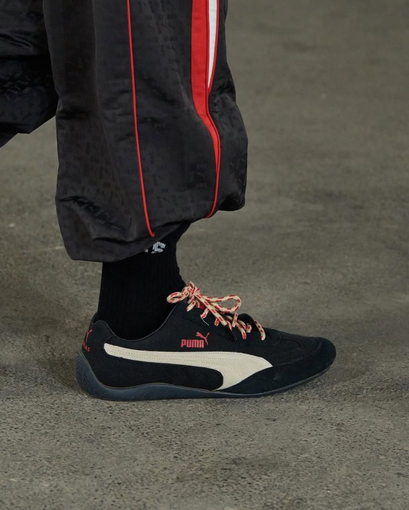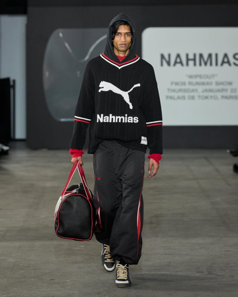 As Puma ramps up its presence through events, reissues, and the launch of a platform sneaker, the German brand teams up with Californian label Nahmias. Spotted on the Paris runway, the collaboration arrives at a strategic moment, as the Marty Supreme phenomenon, popularized by Timothée Chalamet, continues to gain traction. An alliance clearly rooted in a strategy of cultural influence and visibility.