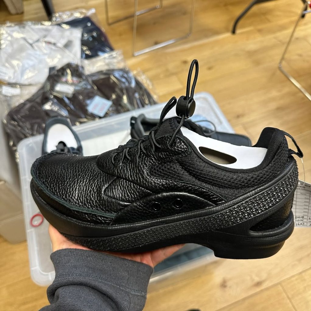 A new chapter in the collaboration between Junya Watanabe and New Balance was unveiled at the FW26 show. With an almost dandy-like spirit, the sneakers blend discreetly into the silhouettes, rendered in all-black. A minimalist approach, true to the Japanese designer’s conceptual rigor, in which the shoe merges with the overall look rather than asserting itself as a statement piece.