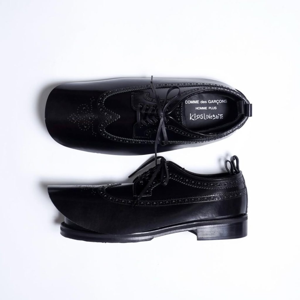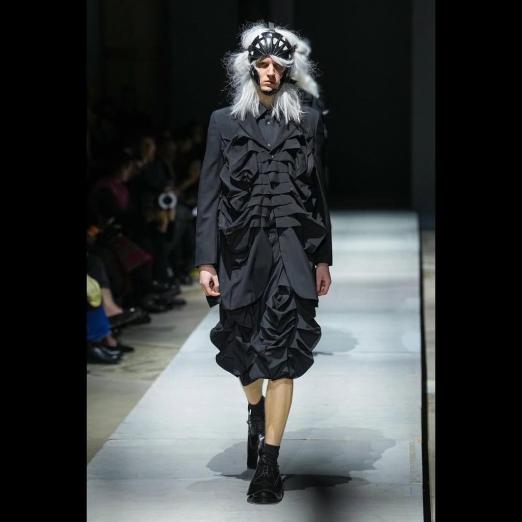 Footwear has emerged as a central field of experimentation at Comme des Garçons. Rei Kawakubo continues her collaboration with Air Jordan through a first iteration of the Jordan 11, offered in radical, pared-back full white and full black versions. Like Sacai, Comme des Garçons used its runway show to unveil a collaboration with British label KIDSLOVEGAITE, as well as another with Asics revisiting the Gel-1130. A carefully balanced dialogue between commercially driven pairs and more experimental designs.