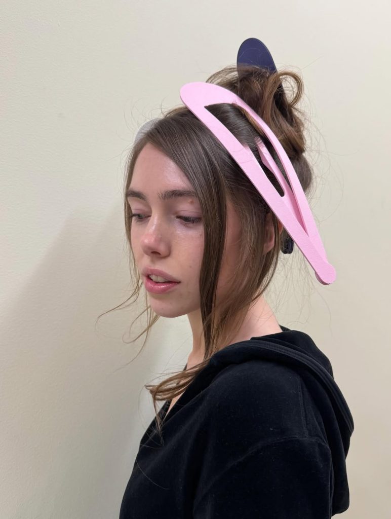 La créatrice suédoise Beata Rydbacken, habituée à collaborer avec le designer d’objets Gustaf Westman, a cette saison mis en avant sa propre ligne de vêtements et accessoires. Ce sont ses barrettes à cheveux surdimensionnées et une écharpe en cheveux ultra réalistes qui ont beaucoup fait parler sur les réseaux sociaux.