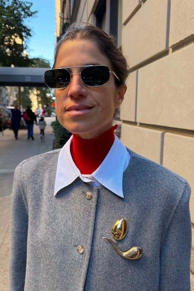 Pour tenir un châle en place et ajouter une touche de clinquant, la broche est parfaite. En hiver, les bijoux sont souvent cachés sous les couches ; la broche, elle, reste visible et assure un côté bling.