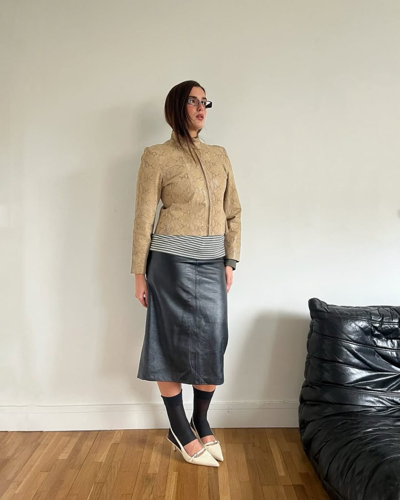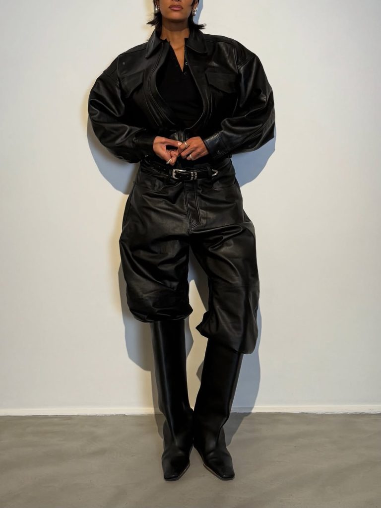 On rentre une jambe – ou les deux – dans la botte pour créer des étages et donner du volume au milieu de la jambe, surtout avec un pantalon oversized. Résultat : une silhouette immédiatement plus pointue.