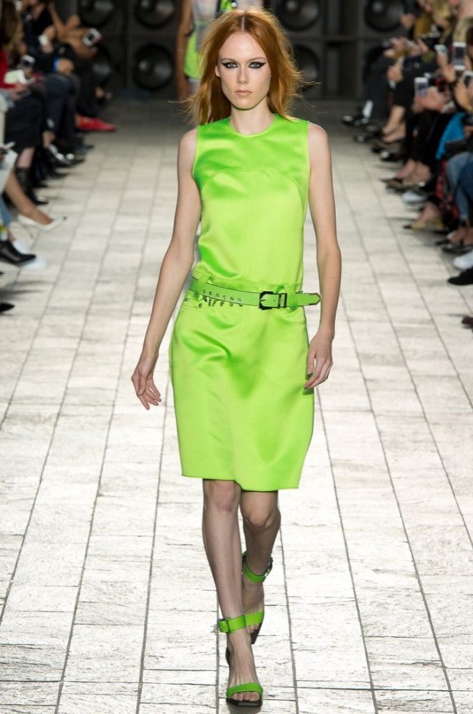 Une décennie plus récente, celle des années 2010, refait surface, notamment sur les réseaux sociaux. À cette époque, le fluo investissait toutes les silhouettes : rien n’échappait à cette saturation colorée. Off-White, Balenciaga et Philipp Plein ont pleinement exploité cette palette électrique, faisant du néon un élément central de leurs collections et de leur identité visuelle durant la décennie précédente.