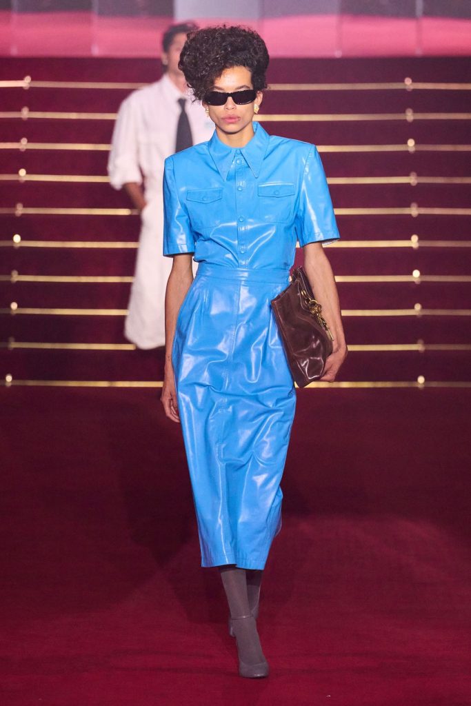 Ce contraste, que l’on croyait révolu, inspire aujourd’hui des maisons comme Saint Laurent ou Vaquera, qui réactivent la flamboyance des 80s et placent les coupes et les teintes criardes au cœur de leurs silhouettes.