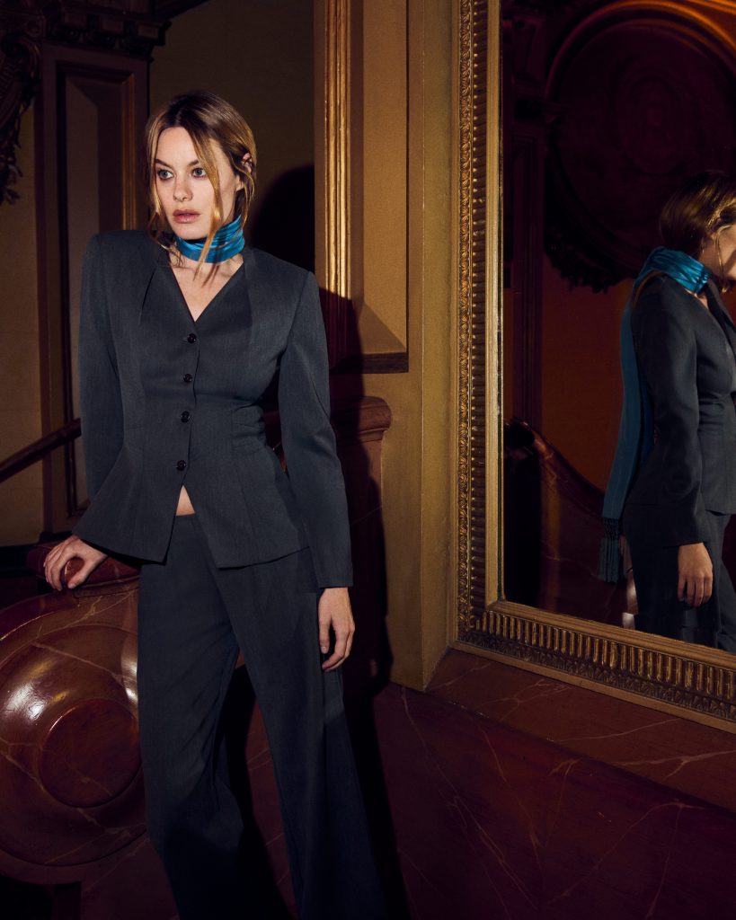 Chaque pièce traduit le goût de Camille pour les contrastes : une élégance intemporelle, légèrement désinvolte. On y retrouve des silhouettes où la sophistication parisienne flirte avec la décontraction californienne, comme un écho à la vie de Camille, partagée entre Los Angeles et Paris.