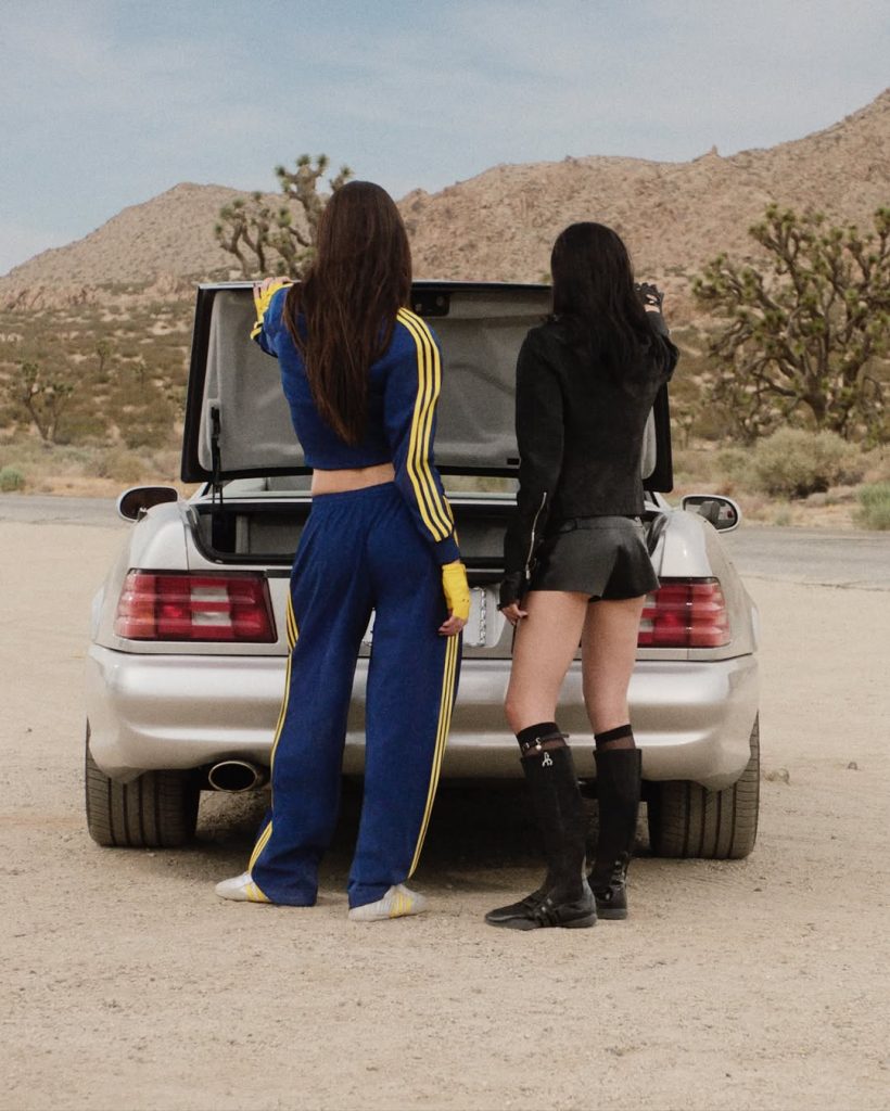 Sur une route désertique de Californie, Gabriette et Devon Lee Carlson sont les visages de la nouvelle campagne Adidas x Miaou. Après une première collaboration discrète autour d’une sneaker inspirée du foot, Alexia Elkaim, fondatrice de Miaou, revient en force avec un lancement mondial simultané sur les sites des deux marques.